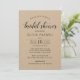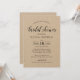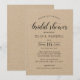 El diseño moderno de la invitación a la ducha de moda boda de novia presenta una tipografía negra elegante, texto personalizado que se puede personalizar y un patrón de pinzas horizontales en la parte posterior de la tarjeta. El color rústico del papel kraft se puede personalizar.