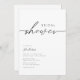 Celebre con estilo con esta moderna invitación minimalista a la ducha de novias con elegantes letras de caligrafía y una foto de la futura novia.