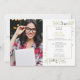 Con hojas verdes y un marco dorado chic, esta invitación de fiesta de graduación chic se puede personalizar con las fotos de graduación y los detalles de la celebración. Diseñado por Thisisnotme©