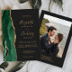 El borde izquierdo de esta elegante y moderna invitación a la boda incluye una acuarela de color verde esmeralda bordeada por un falso purpurina de oro. El texto del personalizable combina la escritura a mano de color dorado, las fuentes de copperplate y las fuentes cursivas en un fondo no negro. En el reverso, reemplace fácilmente la imagen de ejemplo con una foto del futuro novio y novia, y añada algunas líneas de información adicional como la URL del sitio web de su boda.
