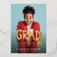 Celebra tu hito con esta tarjeta de invitación de graduación informal, adornada con un exquisito Relieve metalizado de oro real para un toque de lujo. Esta invitación divertida y moderna presenta una fotografía de sangre completa en la parte delantera, con un Relieve metalizado de oro real sobre el modelo GRAD Twenty24. La parte trasera de la tarjeta contiene 3 fotos más, coloridas palabras como "¡Lo hice!" y texto de invitación de personalizable con una letra moderna y limpia.