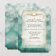 COLOR PALETTE: blanco, aqua, turquesa, pizarra y azul verde azulado. RECOPILACIÓN DE DISEÑO: Una invitación de los padres del novio para una cena de ensayo a juego. Muy adecuado para un evento formal de corbata negra, boda o recepción, este diseño fue creado a mano para mostrar un enfoque suave, luces brillantes y relucientes de una brillante imagen de bokeh. Ideal para bodas cerca de los Navidades y de las vacaciones de Año Nuevo. Con un marco de purpurina dorado y un pergamino de estilo Art Nouveau, este diseño sutil y elegante es sencillo y bonito. Es un estilo moderno de tendencia y con gran elegancia. En el reverso está la repetición del diseño con su monograma grande y los nombres de la novia y del novio. La redacción personalizada de la invitación se puede personalizar fácilmente con los campos de plantilla sencillos que se proporcionan. Disponible en diversos colores. Contáctenos y nos pondremos en contacto con su color boda si es posible.