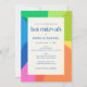 Esta invitación moderna para Bat Mitzvah presenta formas geométricas audaces y una paleta de colores brillantes y alegres que se siente celebratoria sin ser demasiado formal. La tipografía limpia mantiene el diseño fácil de leer mientras que el borde colorido agrega personalidad y energía. Ideal para familias que planean un Bat Mitzvah contemporáneo con un servicio en la sinagoga y una celebración nocturna. Todo el texto es totalmente personalizable para adaptarse a los detalles de su evento.