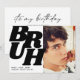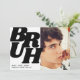 Una forma creativa de celebrar el cumpleaños de un adolescente es incluir una foto de tu hijo en la invitación, con una frase como 'BRUH' en una tipografía moderna y negrita. La parte trasera de la invitación puede tener una simple plantilla de texto en blanco y negro con todos los detalles sobre la fiesta. Esta combinación de una frase divertida con una foto del niño cumpleañero permite a los invitados saber inmediatamente a quién se dirige la invitación, con un toque moderno que seguramente causará impacto.