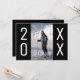Haga una declaración con invitaciones audaces, modernas y para la graduación de personalizables. Reemplace la foto de ejemplo con la suya propia. Los amplios bordes negros de ambos lados contienen 20 a la izquierda y XX a la derecha en un texto blanco grande para el año de la clase de graduación que se puede personalizar. El texto geométrico blanco de moda que sobrepone la fotografía en el frente dice: "Graduado". Reemplace el texto de muestra blanca en la parte trasera negra de la invitación para su graduado y evento. Personalízalo para cualquier graduado: escuela secundaria, universidad, escuela de posgrado, escuela de derecho, escuela de medicina, escuela de comercio. Si tiene problemas con la ubicación o el tamaño de la foto, haga clic en "Editar usando la herramienta de diseño" para agrandarla o moverla. Si necesitas ayuda, por favor contacta conmigo.