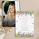 Bohemia, moderna y elegante, esta invitación a la fiesta de graduación incluye campos de colores vivos de delicadas flores silvestres con mariposas, abejas con burbujas y albañiles en la parte delantera y una foto que puedes personalizar en la parte trasera. Puede personalizar de todos los detalles del texto y de la ubicación del gráfico a sus necesidades específicas.