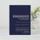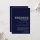 Elegante y moderna invitación a la fiesta de compromiso azul marino y gris.