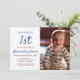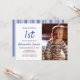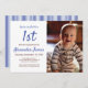 Celebra el primer cumpleaños de tu precioso bebé con estas divertidas invitaciones de fiesta con motivos de franja blanca y azul. Utilice las plantillas proporcionadas para personalizarlas con la foto, edad, nombre y detalles del fiesta de su hijo. También puede cambiar los colores del texto para que coincidan con su foto.