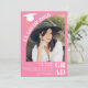 Adelántate a la curva con nuestras invitaciones a la graduación de Modern Arch, son elegantemente simples y simplemente elegantes! Nuestras modernas invitaciones de graduación de 5 fotos en color blanco sobre rosa son la atrevida declaración que usted necesita hacer. Con un tipo de letra negrita con un estilo retro rosado editable, invite a su invitado a su casa abierta y anuncie su graduación con estilo. Con medio arco en la parte delantera