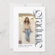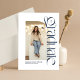 Moderna y elegante, esta invitación de graduación de dos fotos azul marino es perfecta para los graduados audaces y de moda. Con una única foto arcada en el frente con un estilo moderno audaz, este diseño también tiene espacio en la parte posterior para una segunda foto y un texto de invitación a la fiesta de graduación. Esta combinación de invitación de graduación e invitación a la fiesta de graduación es perfecta para estudiantes de secundaria o universitarios y funciona bien para hombres o chicas. La foto delantera es vertical y la trasera horizontal. Encuentre piezas coordinadas y más colores en la colección de Lea Delaveris Design. Esto también está disponible como descarga digital de invitación para fiesta de graduación.