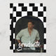 Invitación a graduación de fotografía de arco moderno de color negro con cuadros de verificación