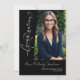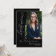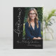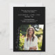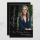 Una simple y moderna invitación a una fiesta de graduación con un acento de "graduación" escrito a mano. Los recortes de fotos elegantes y inclinados añaden un detalle gráfico único.