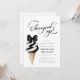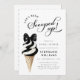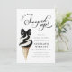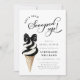 Celebra la futura novia con esta moda "¡Se la ha escogido!", una invitación a una ducha de novia con un moderno cono de helado blanco y negro coronado con un elegante arco de cinta negra. El acuarela se mezcla con una elegante tipografía de escritura informal para un nuevo y sofisticado look perfecto para un fiesta de duchas nupales de verano o un brunch divertido y un evento de burbujas. Los detalles de cono de gofre y la paleta minimalista le dan un toque de moda a las novias modernas que buscan un tema único y lúdico.