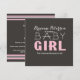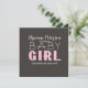 Invitación moderna limpia gris rosa para baby shower de niña. Personalice la parte delantera y trasera.