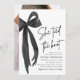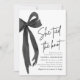 Moderno Black Bow "She Tied the Knot" Bridal Shower Invitation 🖤 🎀 Celebrar a la futura novia en moda, estilo inspirado en el coquette con esta moderna invitación a la ducha de novia con el arco negro! Con una tipografía elegante, un elegante arco de cinta negra y una disposición minimalista, este diseño es perfecto para una ducha de matrimonio sofisticada, elegante o moderna.