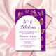Honre a una mujer o chica especial con esta elegante y femenina invitación a la fiesta de cumpleaños. Este elegante diseño presenta un marco de arco blanco sobre un fondo morado. El marco está decorado con cuadros de mariposas doradas muy bonitos. Cada texto es personalizable para sus necesidades.