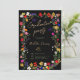 Añada un toque de elegancia bohemia a su fiesta de graduación con nuestra Moda moderna Boho Bright Elegant Colorful wild flowers Invitación a la oscuridad. Flores botánicas de tonos rosa, rojo, verde y morado inspiradas en flores silvestres y jardines rústicos acuarelas con vegetación sutil y tipografía moderna de escritura boho. Añade 3 fotos al fondo. ¡¡Hola clase de 2023!!