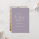 Esta moderna moda lavanda con foto violeta invitan a la boda es perfecta para un simple boda. El diseño minimalista de boho presenta una tipografía bohemia rústica única y elegante en un color púrpura polvoriento pálido. Personalice la parte posterior con una foto de compromiso.