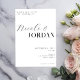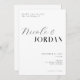 Invitación nupcial moderna con diseño de moda elegante y estilo minimalista en color blanco y negro.