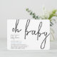 Entra a una multitud de clientes con esta encantadora invitación a la ducha de bebé, especialmente llamativa. Esta invitación moderna pero mínima incluye "Oh Baby" en un gran guión negro con los detalles de la ducha de bebé debajo.