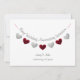 Invitación personalizada moderna blanca para el 40º aniversario de bodas de rubí con banderín de corazones rojos y plateados.