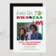 Agrega tu propia foto a esta invitación moderna para fiesta de Kwanzaa. Esta invitación tiene fuentes modernas y de moda en rojo, verde y negro y una mazorca de maíz. ¿Puedes encontrarla? En el reverso están los siete principios de Kwanzaa y 7 velas. Fácil de editar con solo 2 campos de plantilla de texto. ¡Muchos más suministros para fiestas de Kwanzaa en la colección de fiestas de Kwanzaa de esta tienda. ¡Feliz Kwanzaa!