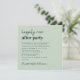 Invitación minimalista y moderna de boda verde sabio e invitación a la recepción. La parte delantera presenta "Feliz eterno después del Fiesta" en un guión contemporáneo y letras modernas y audaces. Personalice su invitación y agregue sus nombres en un script similar a la firma. La parte posterior muestra su foto de boda, nombres y fecha de boda.