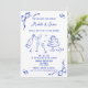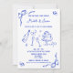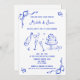 Único azul moderno retro capricho Mano Dibuja Invitación de diversión francesa contemporánea retro con un marco de arco, una caprichosa obra de arte de moda para tu boda francés de Savanamm Añade tu foto al dorso de la invitación