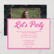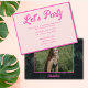 Invite a sus invitados con estilo con estas invitaciones de Bat Mitzvah rosadas tropicales de neón. El diseño presenta hojas de palma verdes, una foto en la parte posterior y texto personalizado rosa para compartir los detalles de su evento. Ingrese a la herramienta de diseño de Zazzle para hacer ajustes adicionales al texto o la foto.