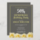 Moderna invitación de fiesta sorpresa de 50 años para ella. Invitación de cumpleaños con hermosas flores de rosa amarillas. El fondo es gris. El texto está en colores blanco y amarillo y es fácilmente personalizable - personalizarlo con su nombre, edad, fecha, ubicación y RSVP. Perfecto para una mujer que celebra su cincuentenario. Invite a una fiesta de cumpleaños sorpresa de 50 años.