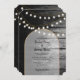 Invitación Moderna Rustic Black Wood Gold Lights Arch Boda