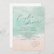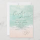 Hermosa acuarela turquesa y abstracta que resalta la ola del océano y los corazones en el fondo de la playa de arena, coronados por un guión elegante y un elegante estilo serif, moderno y sencillo. Gran invitación para la ducha de bodas náuticas en la playa, boda de destino tropical, duchas de parejas con temática oceánica costera en verano.