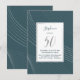 Esta moderna y elegante invitación para los 50 años incluye plata (Relieve metalizado simulado) y líneas blancas sobre un fondo verde azulado (que se pueden cambiar a cualquier color que se elija). El número "50" está escrito en un tipo de letra de escritura moderno y coincide con las líneas plateadas en el fondo. Personalizar esta invitación de moda con el nombre y la información fiesta.