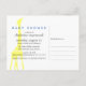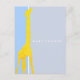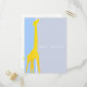 La tarjeta postal de invitación para baby shower moderna y simple, bellamente diseñada, presenta una jirafa amarilla sobre fondos sólidos de color lila claro y azul. Se utiliza tipografía moderna y de escritura. Agrega tu mensaje personal en la parte trasera. Puedes personalizar el estilo y color de la tipografía. Envíame un mensaje si necesitas ayuda o tienes alguna solicitud especial.