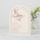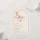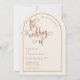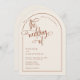 Una elegante y moderna boda en forma de terracota y de arco beige invita a un acento guionista escrito a mano. Se muestra en un fondo beige neutro con texto de terracota y elementos de diseño, pero todos los elementos se pueden colorear de nuevo para que coincidan con el tema. © Kimbellished, LLC