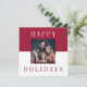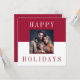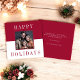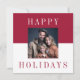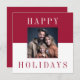 Diseño de bloques de color minimalista moderno con una plantilla de fotos donde se puede añadir tu hermosa foto, con un color rojo sobre la parte superior y blanco abajo con un texto simple y moderno que diga feliz y oppisita en la parte inferior diciendo vacaciones en rojo sobre fondo blanco en la parte superior también todos los detalles en un simple y moderno tipo de letra negro en el revirse si tienes algún problema con este diseño o te gustaría en otras coloways por favor contactarme janine a través de mi zazzazzle ahora estudio de primavera.