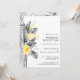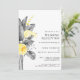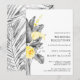 Esta invitación para recepción de boda tropical moderna es perfecta para su boda bohemio de verano en destino. Diseñada con clásica elegancia floral amarilla que destaca de la vegetación gris costera, incluyendo hoja de palma y helecho. Con todas estas flores coloridas de acuarela y hojas grises, seguro tendrá el ambiente bohemio de playa que busca.