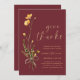 Disfrute de la temporada de gratitud y unión con esta impresionante y atractiva invitación a la Cena de Acción de Gracias Moderna Elegante. Este diseño único presenta un estilo rústico, mezcla de acuarela floral con estética moderna, creando una mezcla de estilo contemporáneo y encanto de otoño tradicional. Perfecto para su fiesta de golosinas o cena de Acción de Gracias, se une a la perfección con flores silvestres, tonos tierra, tipografía de escritura caligrafía elegante y el espíritu reconfortante de un fiesta de la cosecha de otoño. ¡Inviten a sus seres queridos a unirse y dejen que la belleza de las flores silvestres marque el tono para su rústica celebración del Día de Acción de Gracias! Personalizar el color de fondo, los estilos de fuente, el tamaño del texto y la posición del elemento a su gusto utilizando la herramienta Diseño. Para los más encantadores diseños de otoño, visite la colección de invitaciones de la Cena Elegante de Flor Silvestre de Acción de Gracias.