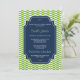 Sencilla y elegante, esta invitación a la ducha nupcial es la elección perfecta para una novia moderna. Patrón de chevron verde en contraste con el azul del mar profundo| marco elegante azul marino.