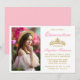 Moderna y elegante invitación a la quinceañera con corona de oro y foto - Rubor rosa