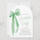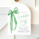 Moderno y elegante Arco de Graduación Green Bow Invitation 🎀 🎓 ✨ Celebrar su graduación con estilo y elegancia utilizando esta moderna invitación en forma de arco, con un arco verde de moda, una tipografía elegante y un diseño sofisticado. Perfecto para una celebración de graduación de moda y elegante, esta plantilla editable es fácil de personalizar para imprimir o compartir digital. Una manera atemporal y elegante de invitar a los huéspedes a este hito especial. 💚 🥂