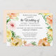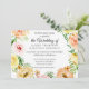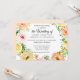 Elegante boda de finales de verano, otoño o otoño con un tema floral. La disposición horizontal y moderna. El reverso presenta un color suave y cálido entre rosa y melocotón de coral cálido. Puedes cambiar esto si lo deseas. Audrey Jeanne Roberts pintó esta elegante corona en acuarela con flores de estilo naranja rosa, amarillo, melocotón y quemado, y follaje de hojas para un diseño moderno con raíces atemporales. Copyright.