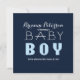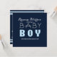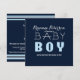 Invitación moderna y limpia para baby shower de niño en azul marino. Personalice la parte delantera y trasera.