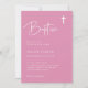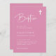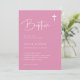 Estas elegantes invitaciones al bautismo chica rosa son sencillas y minimalistas, pero muy elegantes, gracias a la escritura blanca moderna y a la disposición limpia. También hay una cruz a juego.