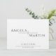 Estas invitaciones minimalistas modernas de 7" x 5" incluyen marcadores de posición para los nombres de la pareja boda, la fecha y hora, la ubicación con letras negras en un fondo neutro. La opción estacionaria determinará el color de fondo.