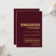 Elegante y moderna invitación minimalista a la fiesta de compromiso con el oro y el burdeos.