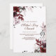 Sumérjase en la elegancia atemporal de nuestra Invitación de Brunch del Día de la Madre, adornada con exquisitas flores borgoñas y blancas que exudan sofisticación y encanto. Mientras extendes esta invitación a honrar a las madres especiales en tu vida, no solamente las estás invitando a un brunch; las estás invitando a una experiencia llena de amor, apreciación y deliciosas delicias culinarias. En un contexto de ricas flores blancas burdeos, delicadas bailan con elegancia, evocando una sensación de belleza refinada y sentimiento sincero. Cada pétalo es un testimonio del vínculo perdurable entre madre e hijo, que captura la esencia del amor materno en su forma más pura. Pero no es sólo el diseño floral lo que hace de esta invitación una obra de arte —es el intrincado papel que agrega un toque de elegancia real. Cada giro y curva es minuciosamente elaborada, invitando a sus invitados a unirse a una celebración digna de las extraordinarias mujeres que adornan nuestras vidas. Imaginen la escena cuando sus invitados reciben esta invitación: el suave rollo de papel mientras desenvuelven el sobre, el resplandor de deleite que se respira mientras contemplan el exquisito diseño, y la anticipación que se construye mientras leen las palabras invitándolos a un brunch como ningún otro. Mientras se reúnen alrededor de la mesa, rodeados por la fragancia de flores recién cortadas y el calor de las risas compartidas, serán tratados para una fiesta apta para la realeza. Cada plato, desde pastelería decadente hasta quiches sabrosos, está muy preparado para deleitar los sentidos y nutrir el alma. Así que, que esta invitación de brunch del Día de la Madre sea el comienzo de una celebración llena de amor, gratitud y recuerdos preciados. Después de todo, no hay mejor manera de honrar a las notables madres en nuestras vidas que con un brunch que refleja la profundidad de nuestra apreciación y la belleza de nuestra conexión.