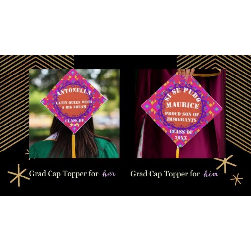 Estamos sintiendo la emoción en tu día especial de graduación Latin@. Tantos de nosotros, inmigrantes de primera generación, sabemos exactamente cuánto trabajo, lágrimas y sacrificio hicieron nuestros padres para llegar a este momento viéndonos subir al escenario algún día. Solo de pensarlo me da escalofríos. Es por eso que esta colección presenta citas y regalos para hacer de tu día especial una experiencia memorable para ti y tu familia. Celebremos al estilo latino. ¡Si se pudo!!!! ¡Felicidades!!!!