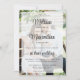 Se añade una bonita inscripción en negro a la cubierta transparente blanca de esta moderna y moderna invitación a la boda todo en uno, que muestra la información de tu boda en una de tus fotos favoritas de compromiso. Personalizar esta tarjeta con la información de la ceremonia de su boda en gris oscuro para un aspecto hermoso, elegante y romántico. Una segunda imagen, tus pautas de RSVP en línea y fecha de vencimiento, un código QR personalizado que lleva a los invitados a tu sitio web boda, tus monogramas y la fecha de boda aparecen en la parte posterior de la tarjeta.