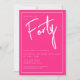 Invitación moderna de 40 años en rosa con escritura/tipografía en blanco. También están disponibles los elementos coincidentes y el intervalo de fiestas. Use el botón de mensaje que aparece a continuación para obtener ayuda sobre la personalización y las solicitudes especiales. © Zoe Chapman Design